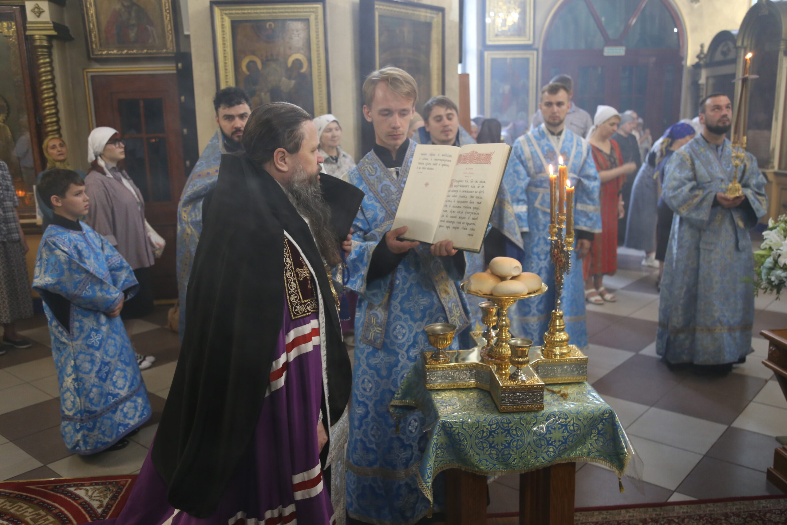 По сугубой ектении архиепископ Варлаам прочитал молитву о Святой Руси, возносимую во всех храмах Русской Православной Церкви по благословению Святейшего Патриарха Московского и всея Руси Кирилла.