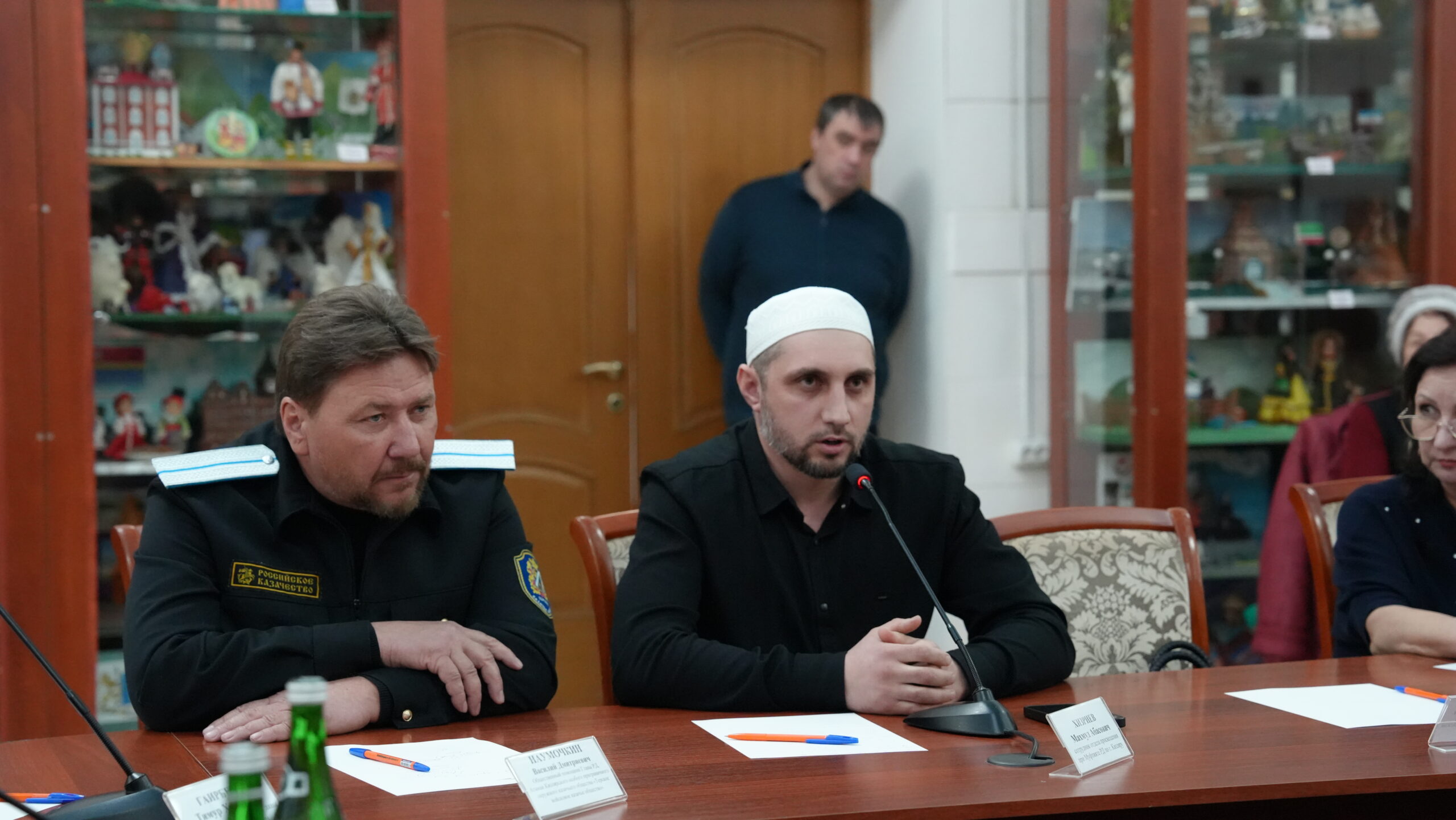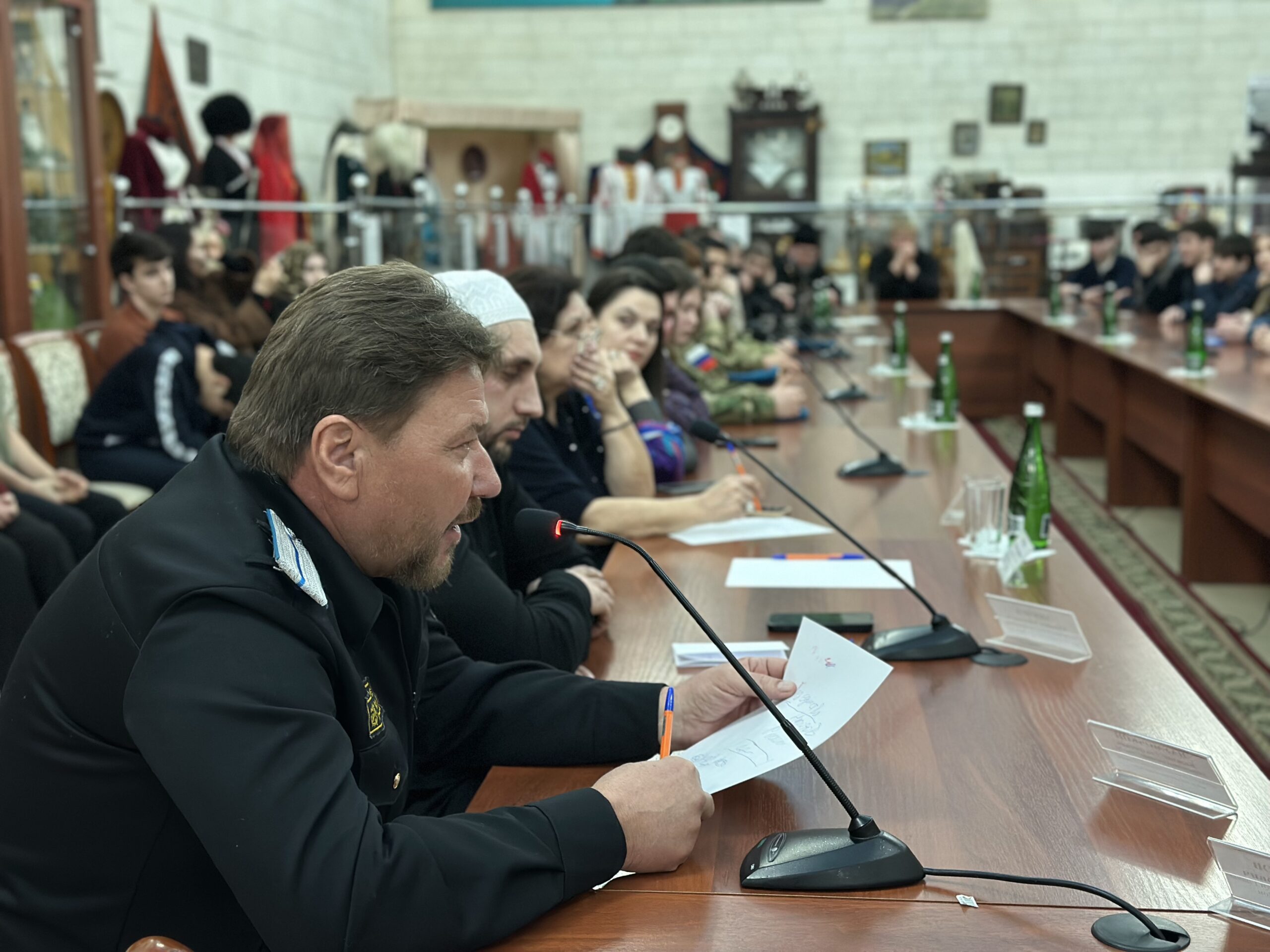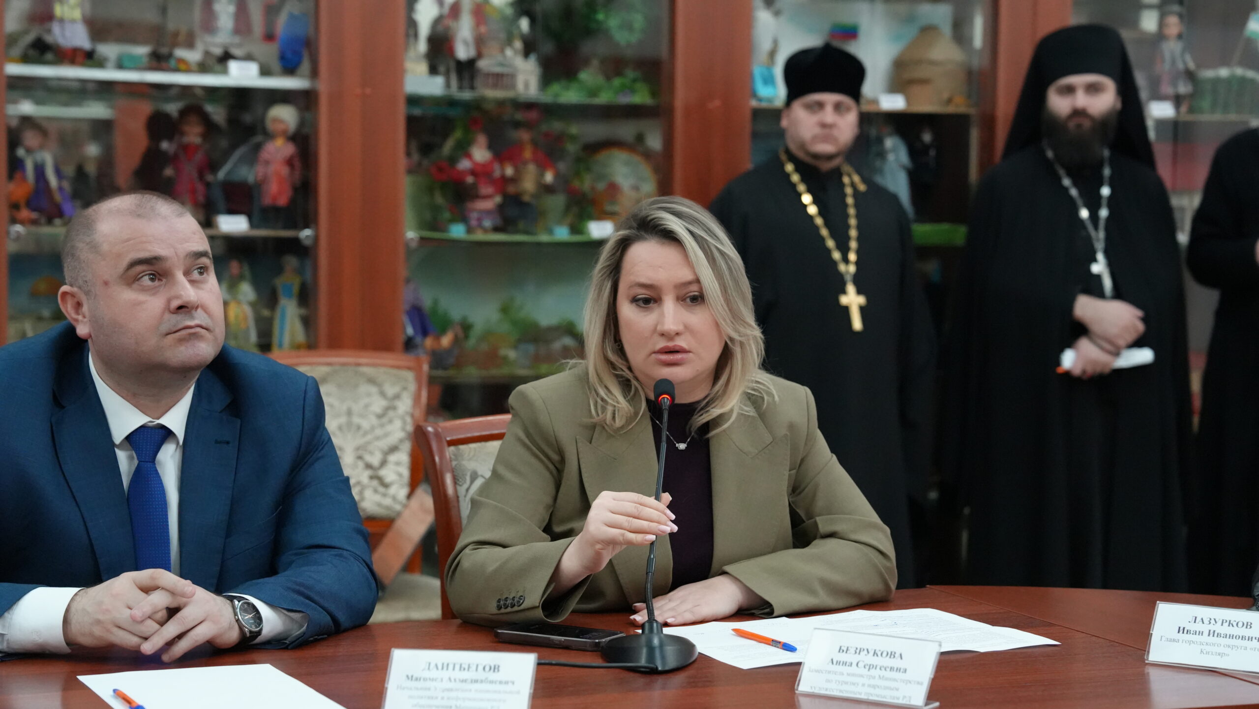Об исторической дружбе народов и традиционных религиозных общин России, о значимости межрелигиозного мира перед лицом угроз и вызовов современности говорили глава города Кизляр И.И. Лазурков, начальник Управления национальной политики и информационного обеспечения Министерства по национальной политике и делам религий РД М.А. Даидбегов, заместитель министра по туризму и народным художественным промыслам Республики Дагестан А.С. Безрукова, представитель Отдела просвещения Муфтията РД по г. Кизляру М.А. Хизриев, атаман Кизлярского особого приграничного окружного казачьего общества В.Д. Наумочкин, ветеран СВО, участник программы «Доблесть гор» сержант морской пехоты А.С. Ногаев.