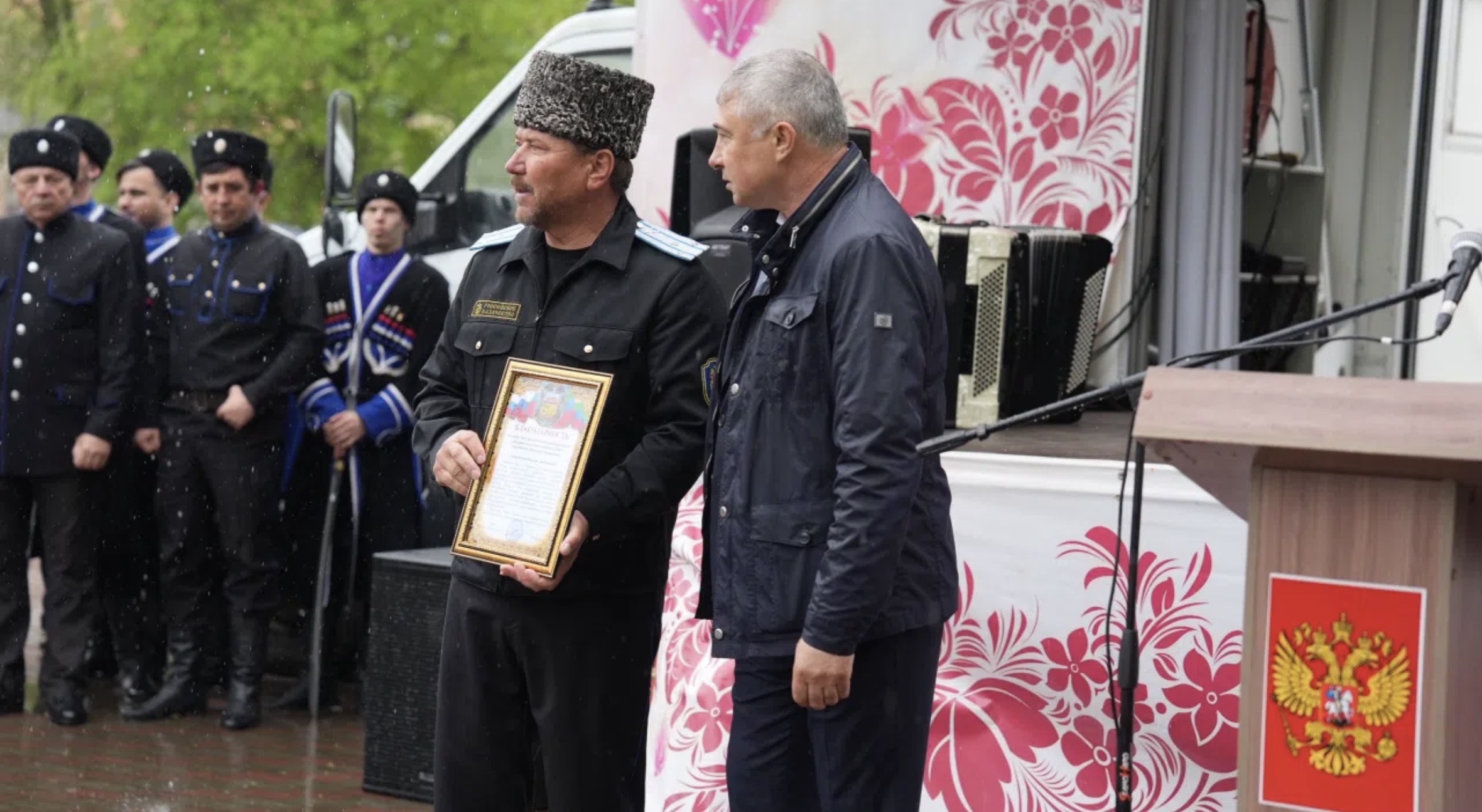 В заключение состоялось награждение тех, чьими усилиями был подготовлен и проведен казачий праздник. Благодарственное письмо атамана В.Д. Наумочкина было вручено настоятелю храма святителя Николая Чудотворца села Брянск Кизлярского района иерею Виталию Капаеву.