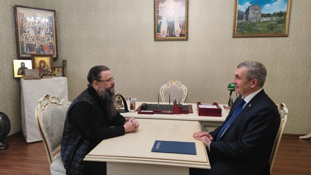 В ходе беседы обсуждались вопросы взаимодействия Махачкалинской епархии Русской Православной Церкви с Межрегиональным управлением ФАДН по Северо-Кавказскому федеральному округу.