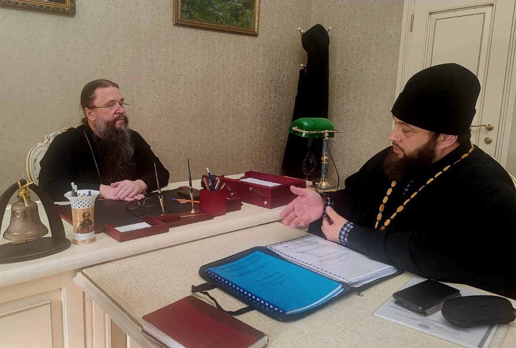 23 марта в Махачкалинском епархиальном управлении архиепископ Варлаам встретился с благочинным Тарумовского церковного округа, настоятелем храма апостола Андрея Первозванного с. Тарумовка иереем Дионисием Степанищевым.