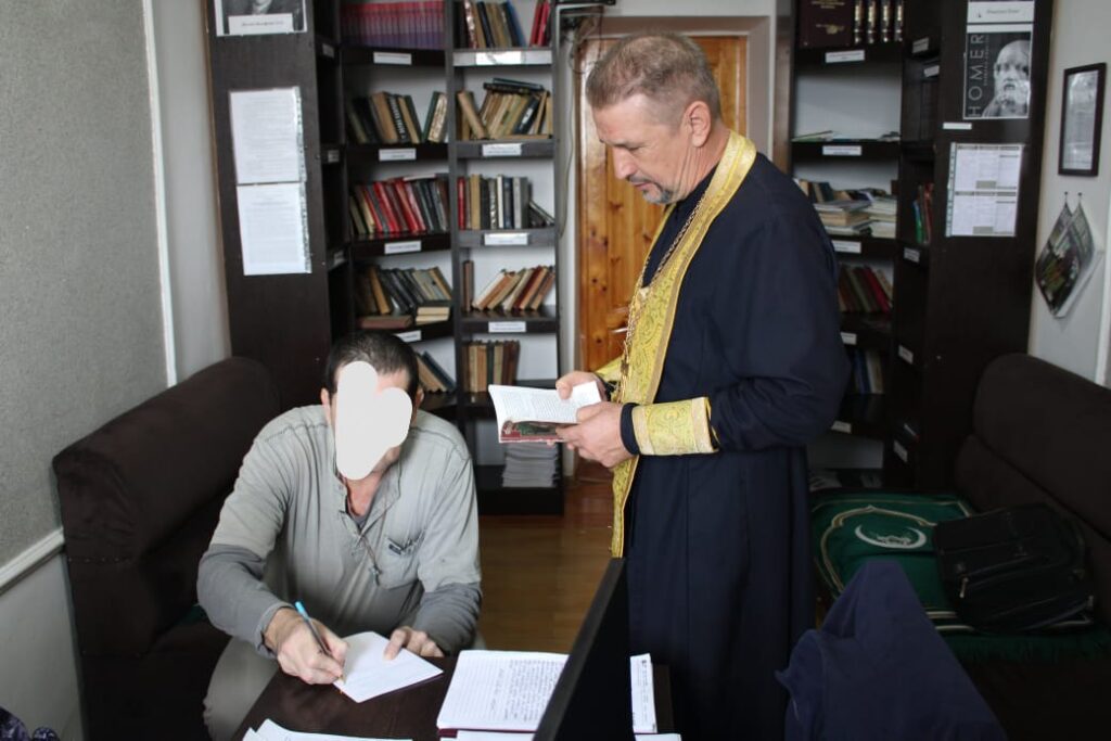 Протоиерей Валерий Галкин встретился с подследственными, рассказал им о празднике Покрова Пресвятой Богородицы, а также раздал духовную литературу.