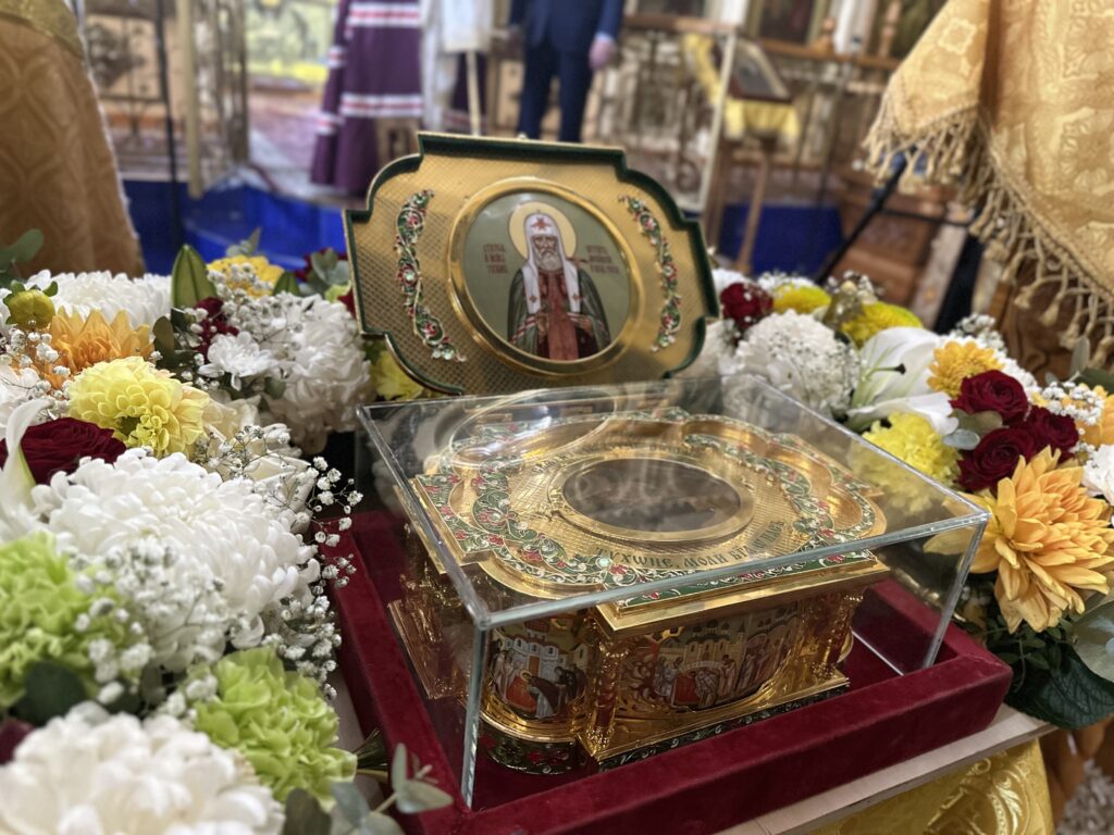В Успенском кафедральном соборе ковчег с частицей мощей святителя Тихона встретили архиепископ Махачкалинский и Дербентский Варлаам, священнослужители и православные верующие республики